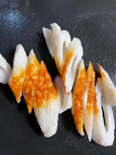 ちくわを斜めに切る
