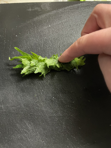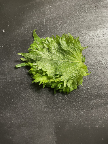 シソは横から巻いて切ると、きれいでふわふわと柔らかく、香りが立ちます!!