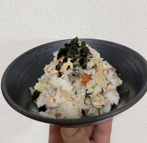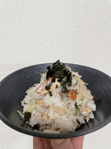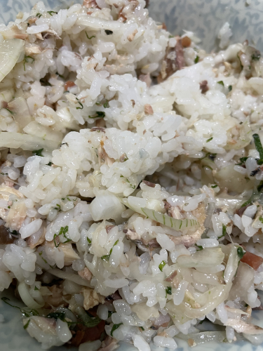 レシピ②|さば缶の春混ぜご飯(新玉ねぎ×青じそ×梅)